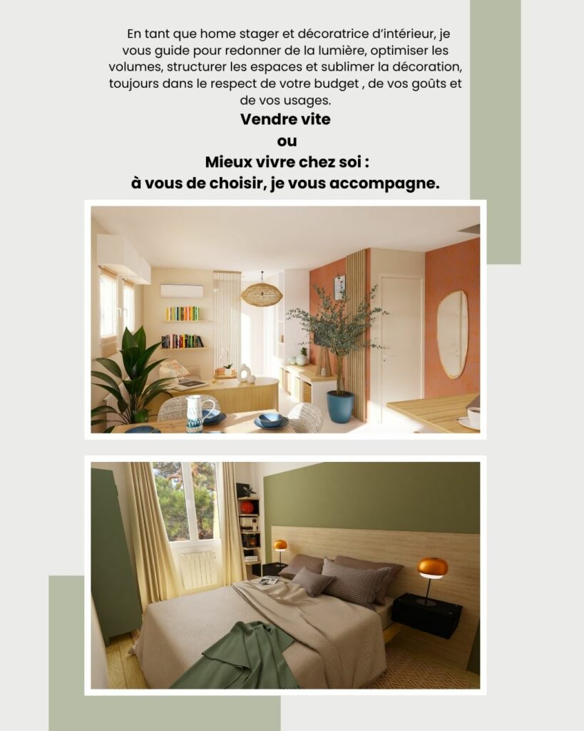 Spécialiste du home staging, je mets mon expérience en décoration, peinture et aménagement au service de la vente immobilière. Mon objectif : présenter chaque bien sous son meilleur jour, optimiser sa valeur grâce à des mises en scènes qui suscitent le coup de cœur dès la première visite.
